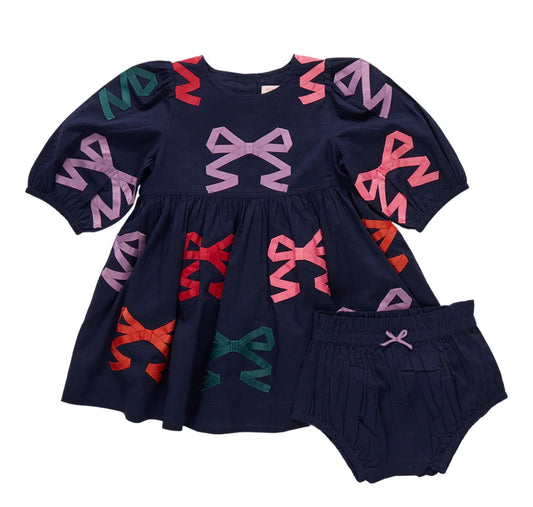 Pink Chicken-Baby Girls Brooke Dress Set: Multi Bow Appliqué