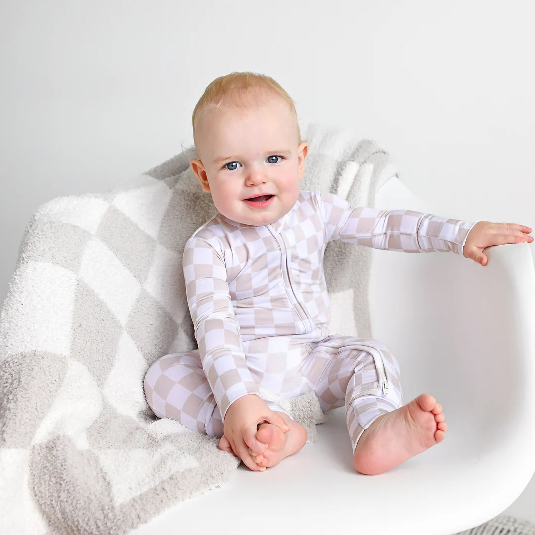 This zip one piece is super soft and comfortable. Featuring a zipper that runs from the top of the outfit to the ankle. Our favorite part about this outfit is that the zipper is 2 way! Making for super easy diaper changes without having to remove the whole outfit.