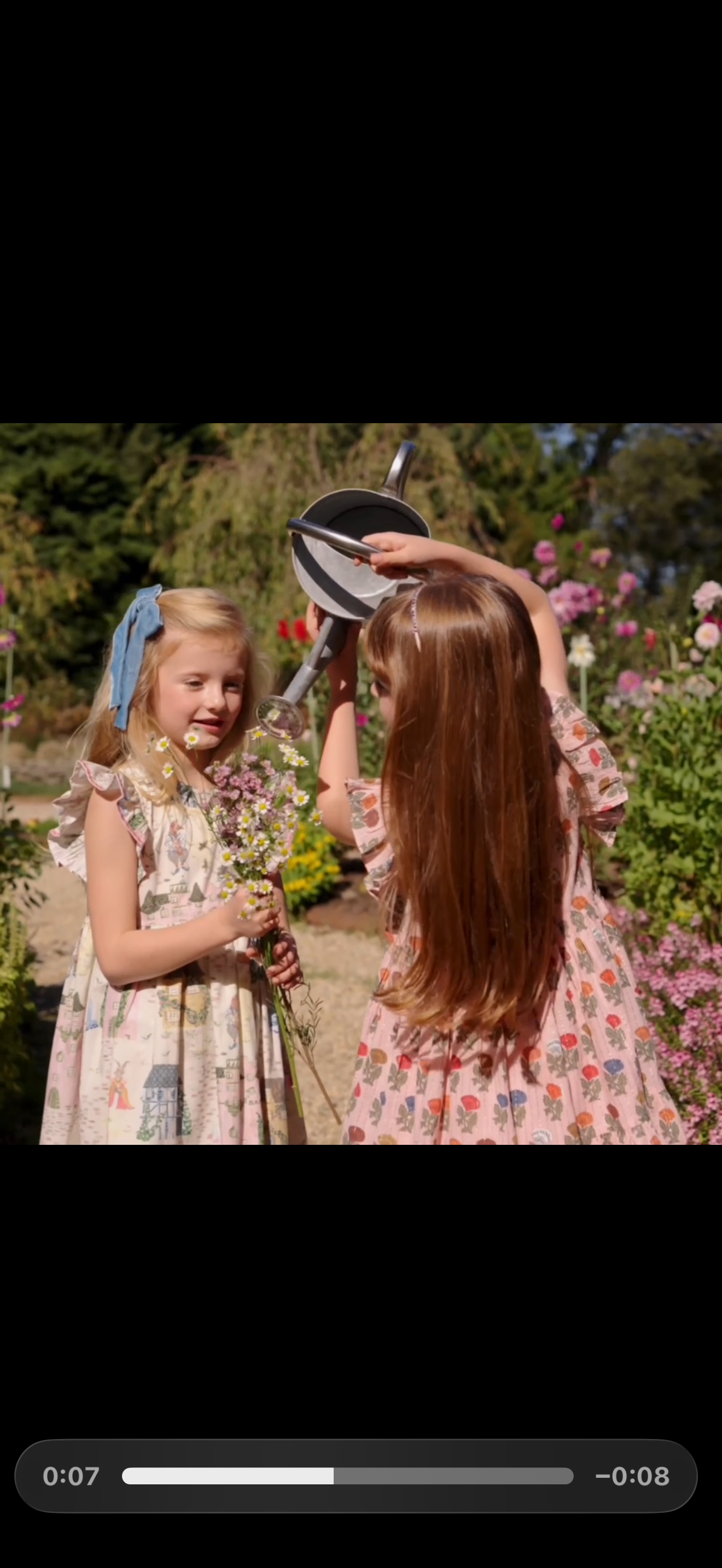 A storybook style brought to life through an exclusive artist collaboration with Tara Gill! This charming dress showcases illustrated castles and whimsical characters, finished with romantic ruffles and luxe pink velvet trim for a truly magical spring silhouette.
